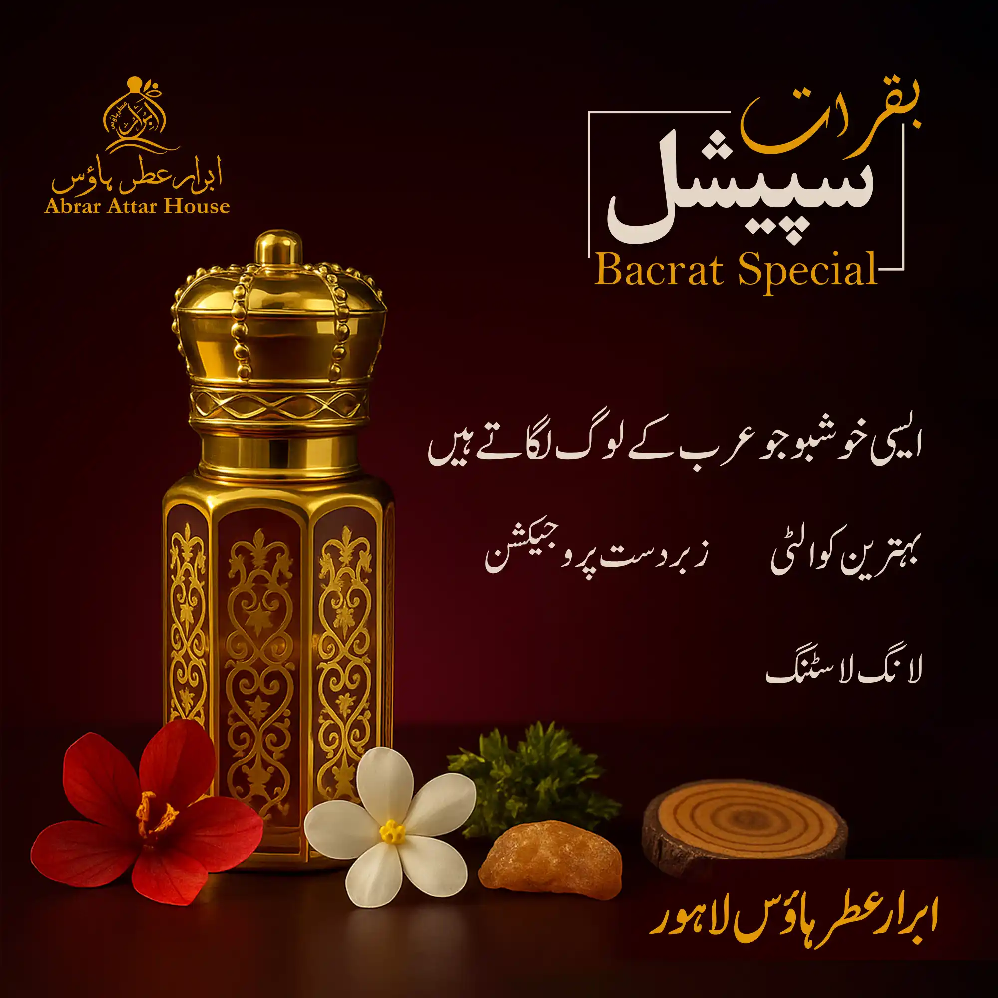 Baqarat Special is a premium, alcohol-free attar with rich oriental notes and long-lasting aroma. A bold yet elegant fragrance, perfect for both men and women for daily wear or special occasions.